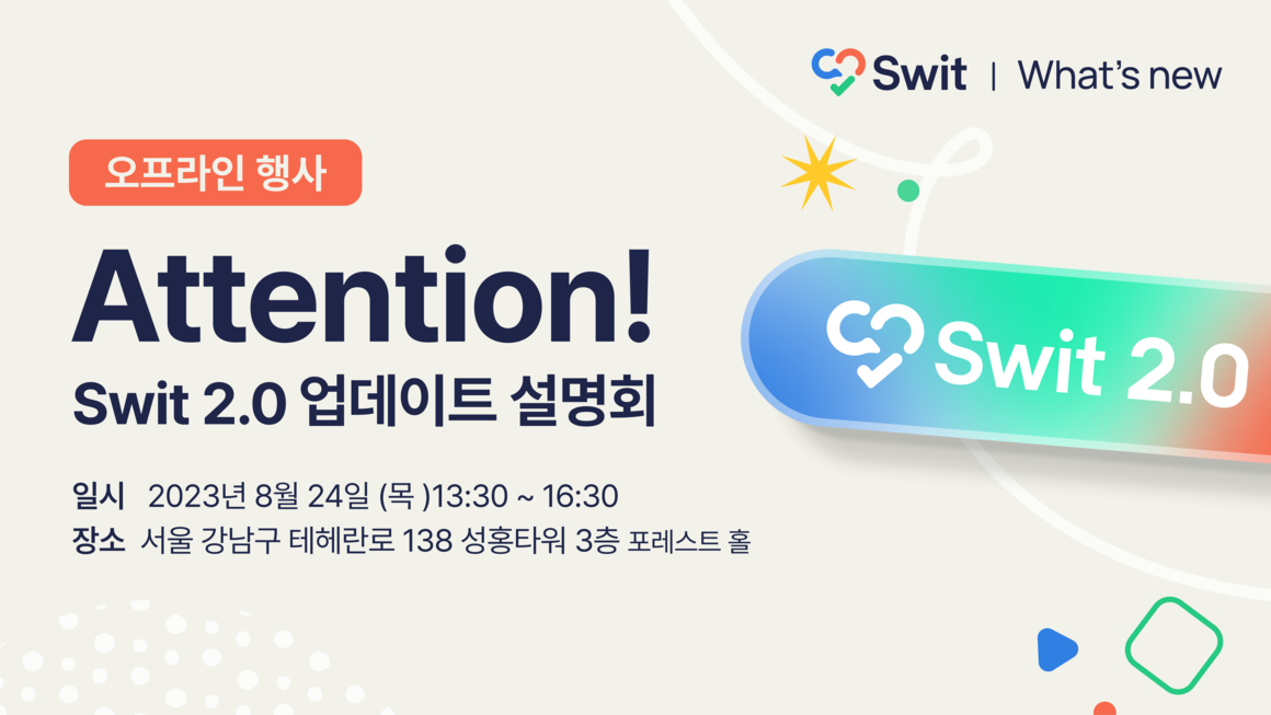 Attention! Swit 2.0 업데이트 세미나가 8월 24일 개최 됩니다.
