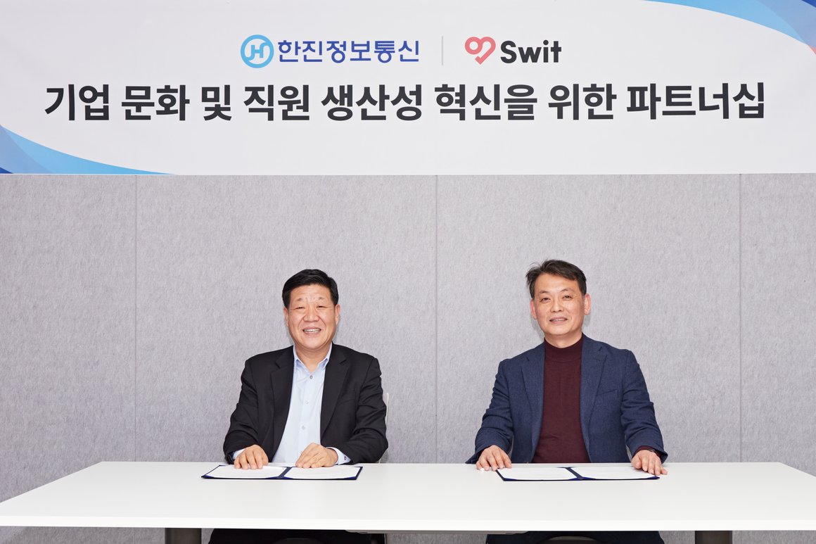 글로벌 워크 OS ‘스윗’을 서비스하는 스윗테크놀로지스(대표 이주환)가 항공·공항·물류 분야 등 다양한 경험을 바탕으로 최신 IT기술을 제공하는 한진정보통신(대표 박은호)과 기업문화 및 직원생산성 혁신을 위한 양사 MOU를 체결했다고 밝혔다.