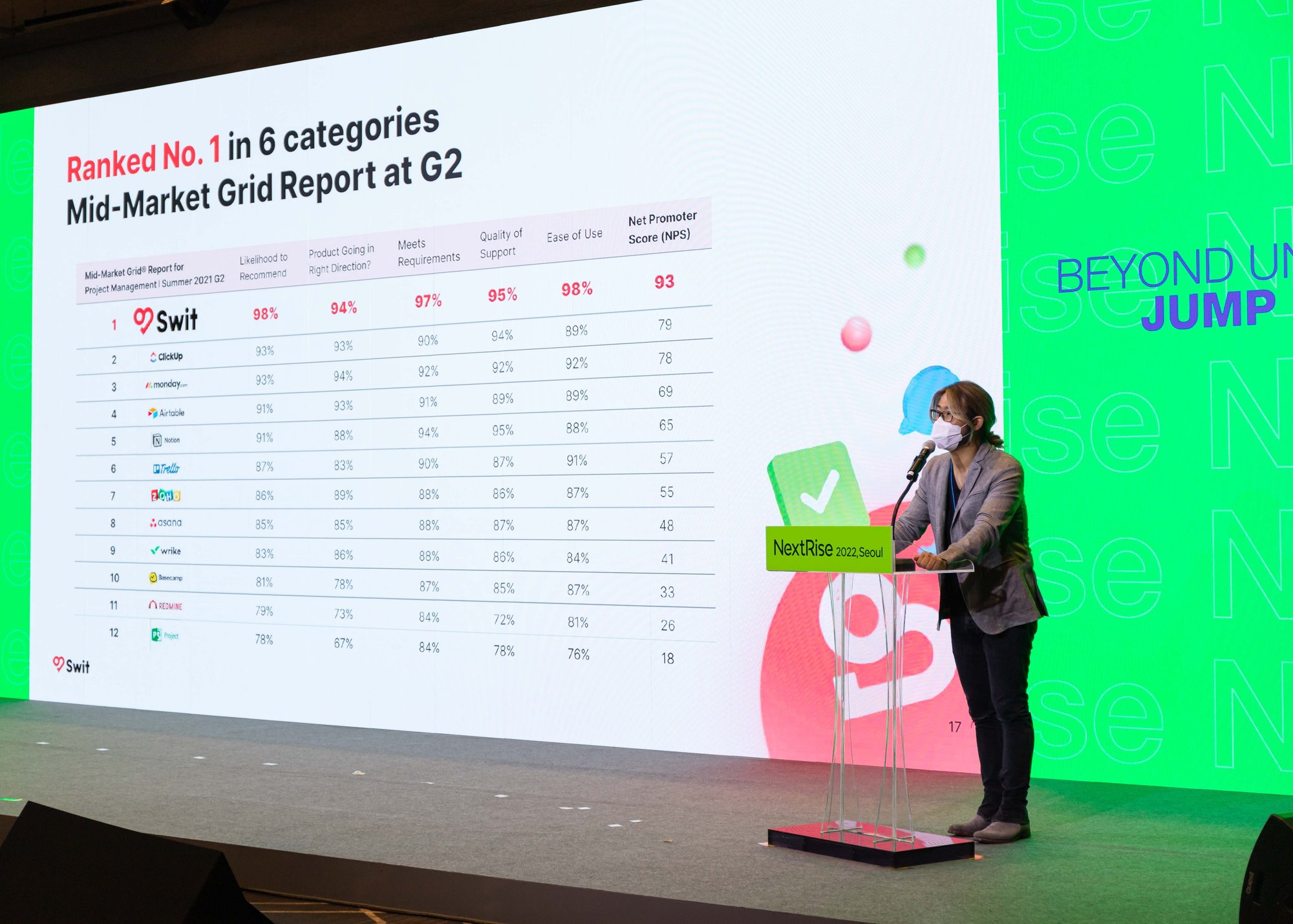 스윗의 공동창업자 겸 CEO인 이주환 대표는 글로벌 스타트업, 대·중견기업 및 VC 등 벤처 생태계 구성원들이 모인 ‘넥스트라이즈 2022’ 라운드 스테이지에서, ‘글로벌 B2B 시장 진출’에 대해 설명하며 스윗이 실제 고투마켓(Go-To-Market) 전략을 시행하며 겪었던 시행착오 및 팁을 공유했다.
