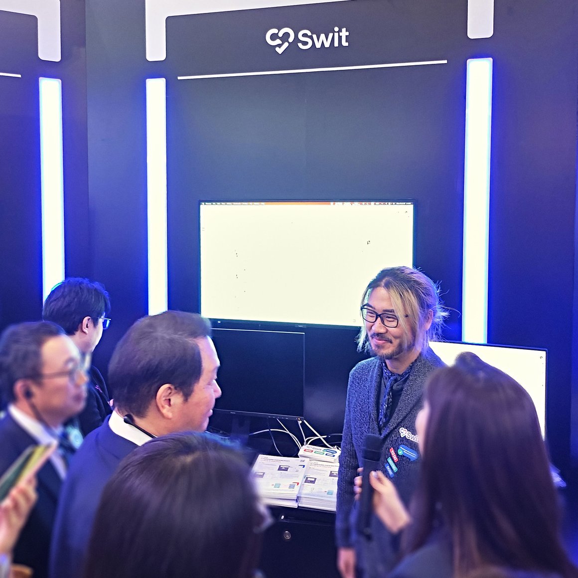 Swit은 SKT의 최대 200명까지 동시 그룹채팅이 가능한 ‘미더스(MeetUs)’와 연동해 화상미팅이 바로 Swit으로 연결되어 보다 빠르게 업무 대화가 채팅 및 프로젝트로 이어질 수 있는 환경과 OpenAI 기반의 GPT-3.5 봇 기술을 선보였다.