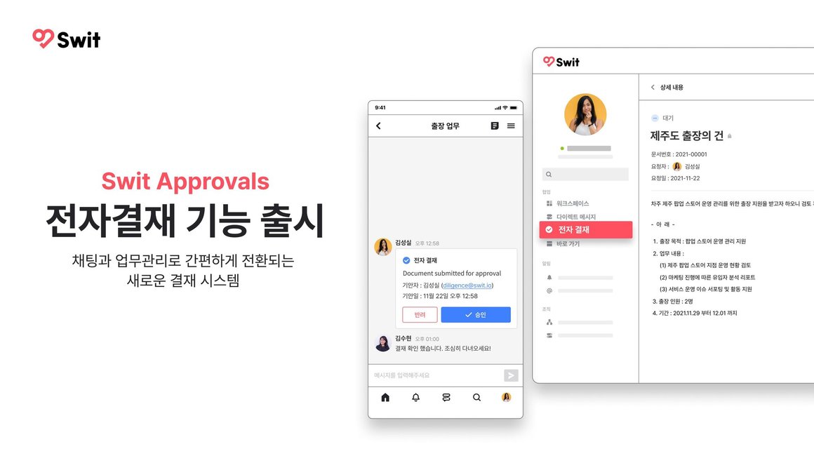 샌프란시스코에 본사를 둔 글로벌 엔터프라이즈 협업 소프트웨어 기업 스윗(Swit Technologies Inc., 대표 이주환)이 기업들에게 가장 필요한 소프트웨어 중 하나인 ‘전자결재’를 기능을 출시했다고 25일 밝혔다.